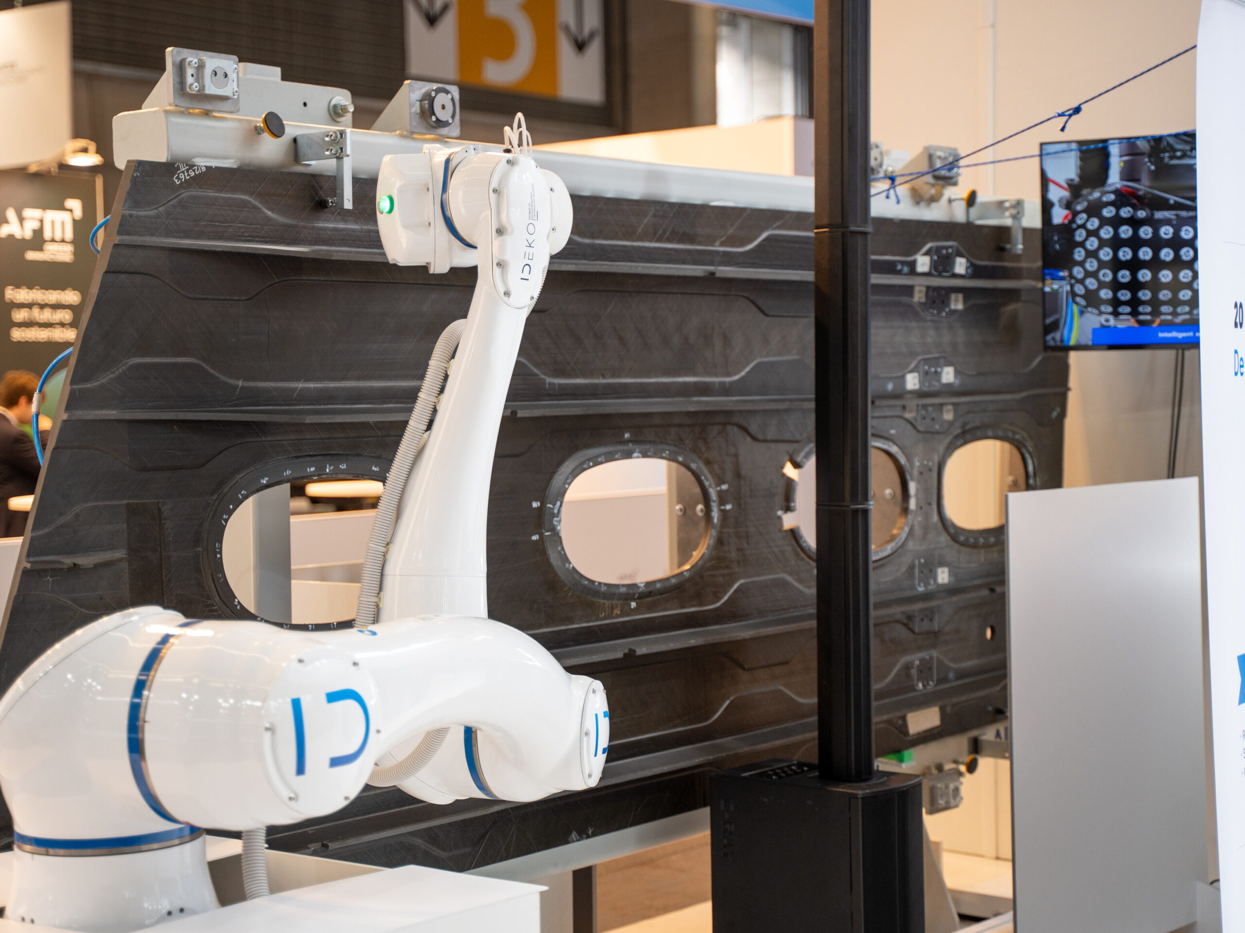 En su stand, IDEKO mostró diferentes soluciones orientadas a mejorar la precisión, la productividad y la calidad de los procesos de fabricación. Entre ellas destacó el desarrollo de robótica de alta precisión aplicada al mecanizado de aeroestructuras de material composite, una tecnología que permite acercar el comportamiento del robot industrial al de una máquina-herramienta de alta precisión.
