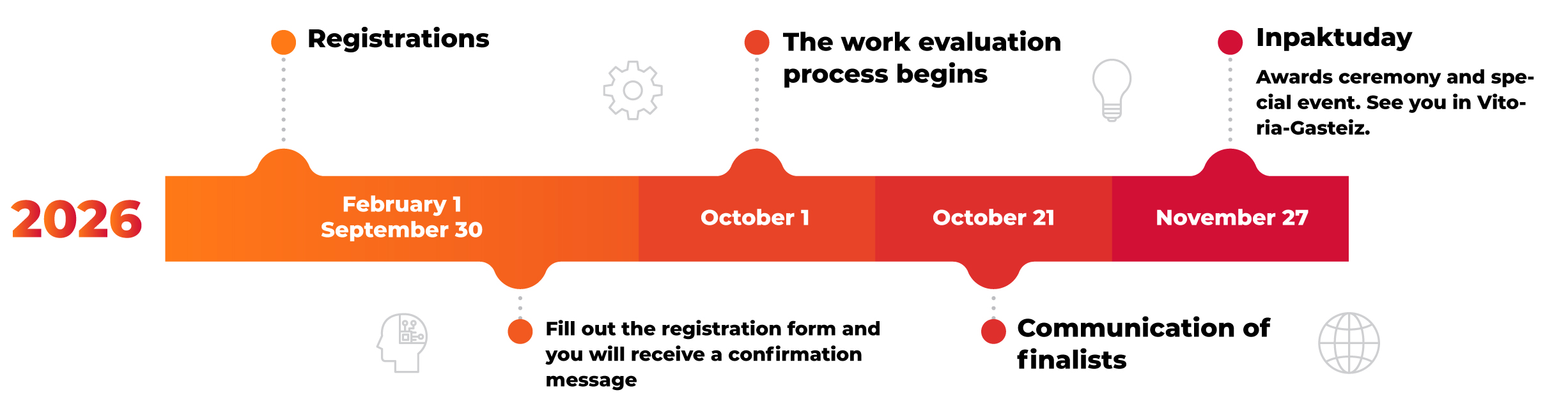 We also want to reward the most innovative works, with the highest social impact works and those written in Basque. That is why IKERLAN is offering the prize for the most innovative work, MUNDUKIDE award for the project with the highest social impact and EIKA the prize for the best work in Basque. You don’t have to do anything to apply for these three extra prizes, all you have to do is register for one of the 5 thematic categories. If your work is innovative or written in Basque, we’ll find you!